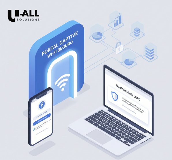 O portal captive é a ferramenta ideal para garantir consentimento explícito, informando de forma clara como os dados serão utilizados e registrando essa autorização automaticamente.