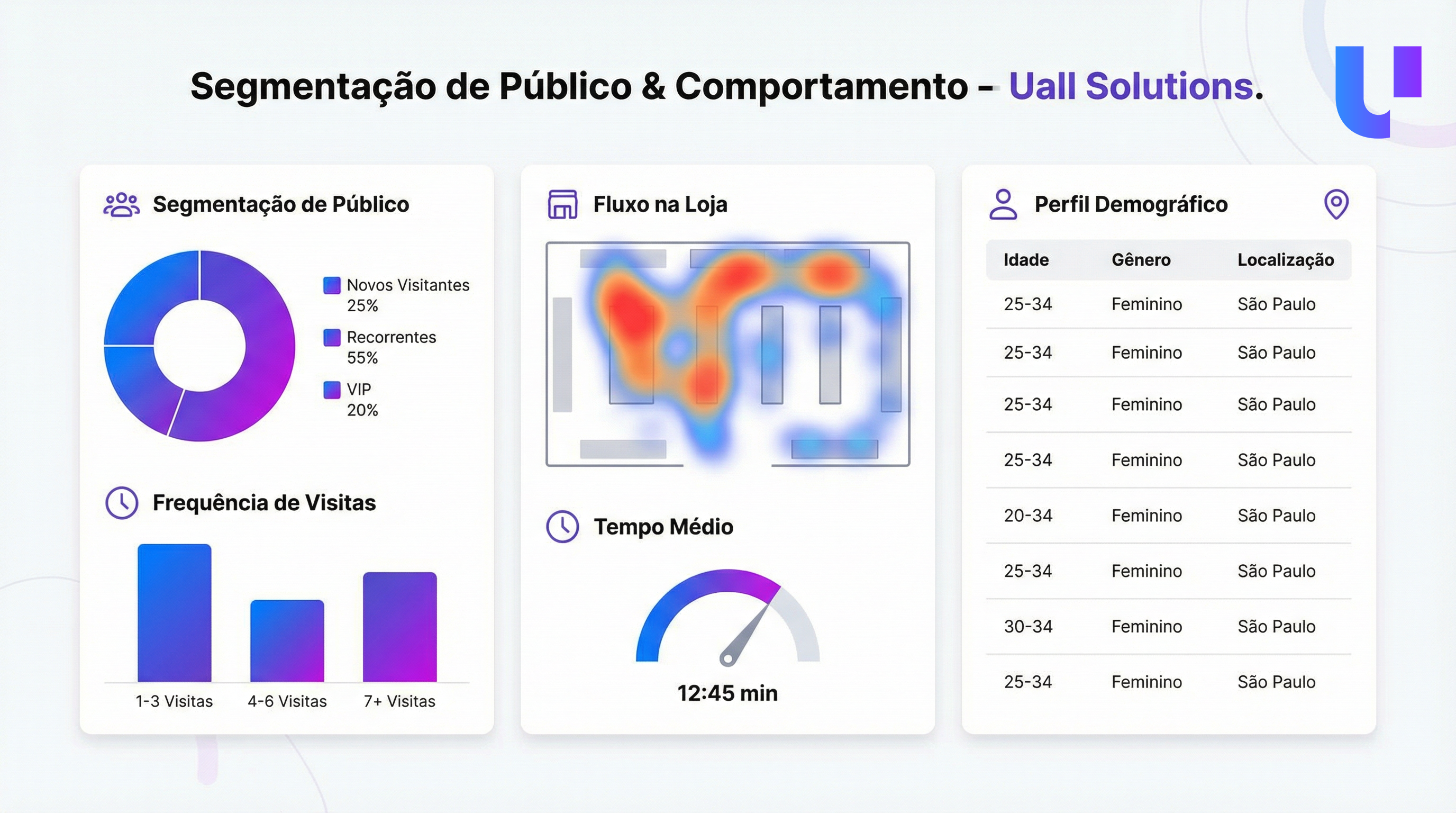 Um dos grandes diferenciais do Wi-Fi como canal de Retail Media é a capacidade de segmentar públicos com base em comportamento real. A partir dos dados de conexão, é possível identificar frequência de visitas, tempo de permanência, recorrência e unidades mais visitadas.